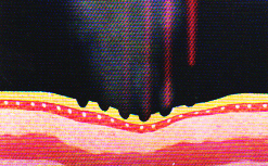 ごくまれに、治療部位に内出血や紫斑水疱を伴った熱傷がでることがあります。